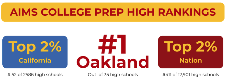 Oakland, CA - AIMS College Prep High School has been recognized as one of the top schools in Oakland, California, and the Nation by the U.S. News & World Report
